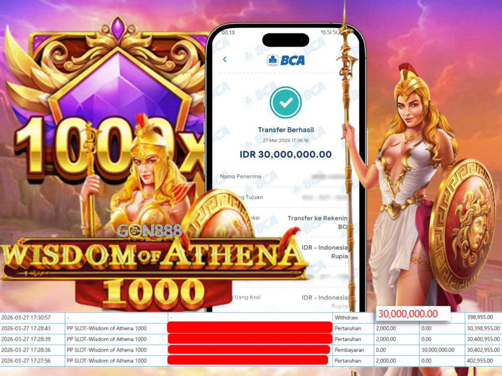 JUM’AT, 27 MARET 2026 userID c***P88 Kemenangan SENSASIONAL Pada Permainan PP SLOT-Wisdom of Athena 1000 Behasil Withdraw Nominal Total Rp30 Juta Rupiah