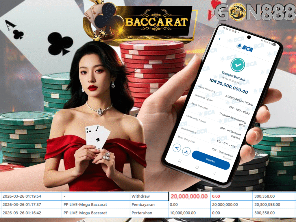 KAMIS, 26 MARET 2026 userID b***i07 Kemenangan SENSASIONAL Pada Permainan PP LIVE-Mega Baccarat Behasil Withdraw Nominal Total Rp20 Juta Rupiah
