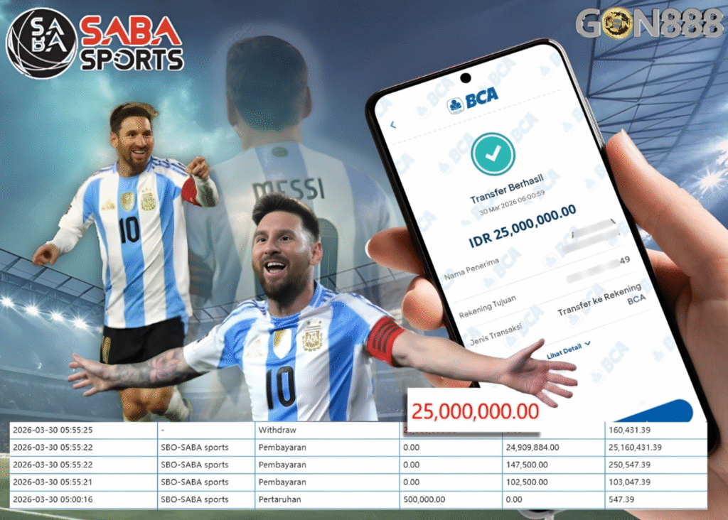 SENIN, 30 MARET 2026 userID fakh*****zi Kemenangan SENSASIONAL Pada Permainan SBO – SABA Sports Behasil Withdraw Nominal Total Rp25 Juta Rupiah