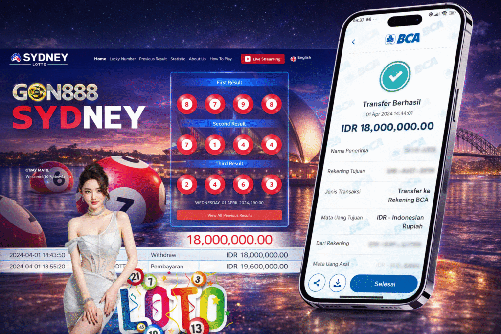 RABU, 1 APRIL 2026 userID ko****k55 Kemenangan SENSASIONAL Pada Permainan Pasaran-SYDNEY LOTTO Behasil Withdraw Nominal Total Rp18 Juta Rupiah