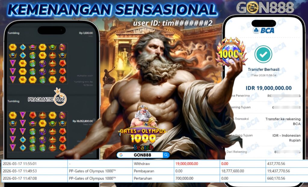 SELASA, 17 MARET 2026 userID timxxxxxxx29 Kemenangan SENSASIONAL Pada Permainan New PP-Gtes of Olympus 1000 Behasil Withdraw Nominal Total Rp19 Juta Rupiah