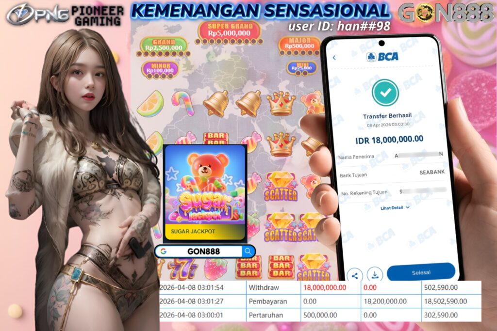 RABU, 8 APRIL 2026 userID han**98 Kemenangan SENSASIONAL Pada Permainan PNG Slot – Sugar Jackpot Behasil Withdraw Nominal Total Rp18 Juta Rupiah