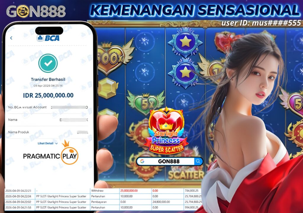 KAMIS, 9 APRIL 2026 userID mus****555 Kemenangan SENSASIONAL Pada Permainan PP Slot – Starlight Princess Super Scatter Behasil Withdraw Nominal Total Rp25 Juta Rupiah