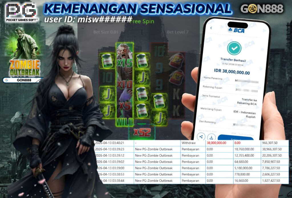 SENIN, 13 APRIL 2026 userID misw****** Kemenangan SENSASIONAL Pada Permainan NEW PG – Zombie Outbreak Behasil Withdraw Nominal Total Rp38 Juta Rupiah