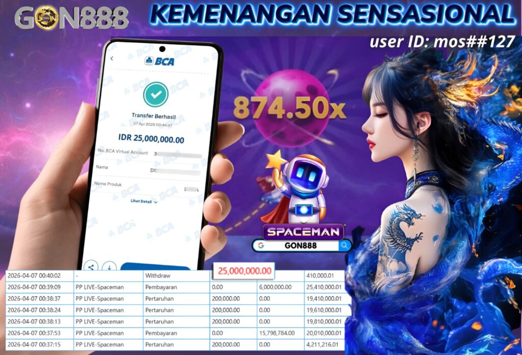 SELASA, 7 APRIL 2026 userID mos**127 Kemenangan SENSASIONAL Pada Permainan PP LIVE – Spaceman Behasil Withdraw Nominal Total Rp25 Juta Rupiah