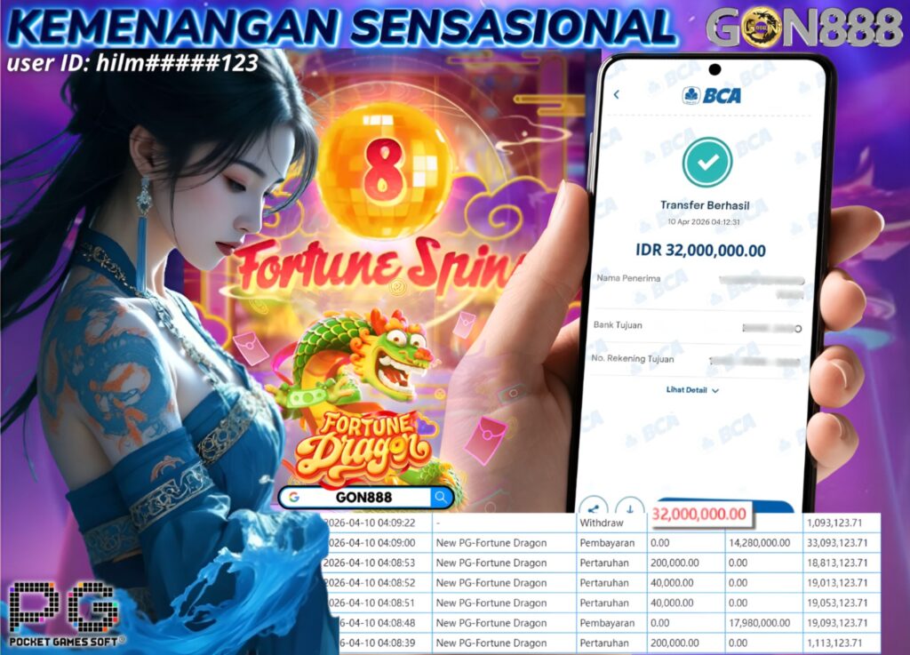 JUMAT, 10 APRIL 2026 userID hilm*****123 Kemenangan SENSASIONAL Pada Permainan NEW PG – Fortune Dragon Behasil Withdraw Nominal Total Rp32 Juta Rupiah