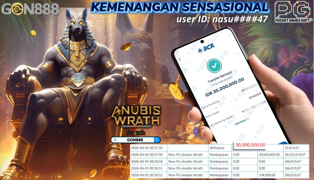 JUMAT, 3 APRIL 2026 userID nasu****47 Kemenangan SENSASIONAL Pada Permainan NEW PG – Anubis Wrath Behasil Withdraw Nominal Total Rp30 Juta Rupiah