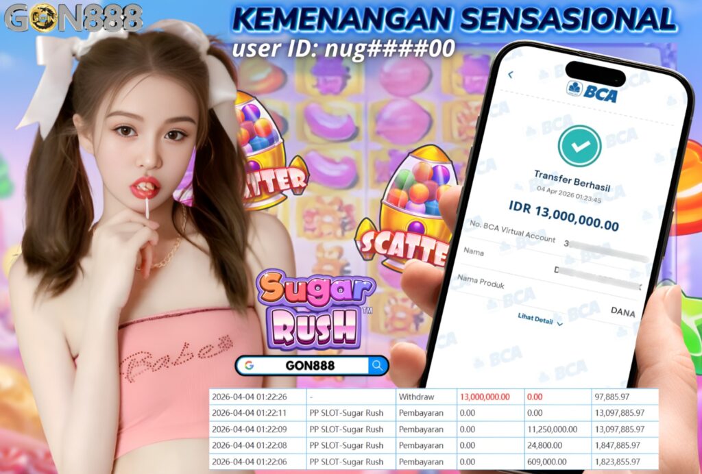 SABTU, 4 APRIL 2026 userID nug****00 Kemenangan SENSASIONAL Pada Permainan PP Slot – Sugar Rush Behasil Withdraw Nominal Total Rp13 Juta Rupiah