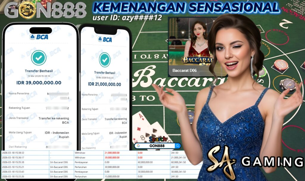RABU, 18 MARET 2026 userID azyxxxx12 Kemenangan SENSASIONAL Pada Permainan SA Baccarat D06 Behasil Withdraw Nominal Total Rp60 Juta Rupiah