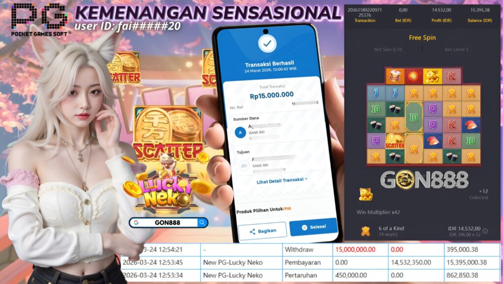 SELASA, 24 MARET 2026 userID fai*****20 Kemenangan SENSASIONAL Pada Permainan New PG-Lucky Neko Behasil Withdraw Nominal Total Rp15 Juta Rupiah